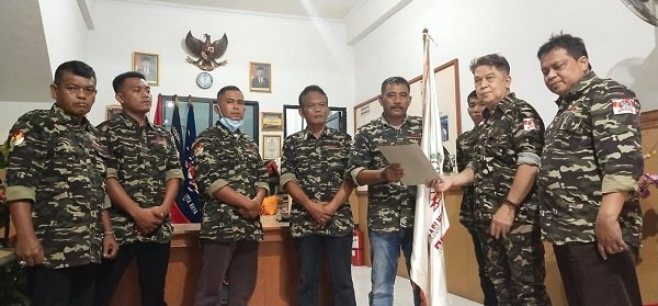 Ketua Harian DPP LSM Gempita Asang Ruby didampingi Sekjen Aris Sucipto menyerahkan SK dan Pataka LSM Gempita kepada Ketua DPW LSM Gempita Provinsi Riau Heriadi di kantor Sekretariat Jl. Mangga Besar, Jakarta, Rabu (8/6/2022)/Foto:istimewa